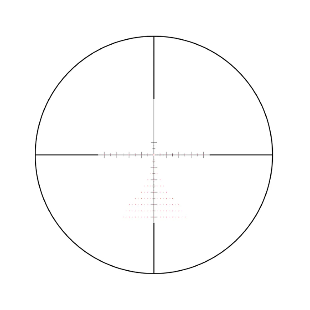 Сетка AM8-6X расположена во 2-й фокальной плоскости, сохраняя тонкие линии на всем диапазоне кратности. Разметка по обеим осям и дополнительная «елочка» позволяют вводить поправки прямо в ходе стрельбы.
