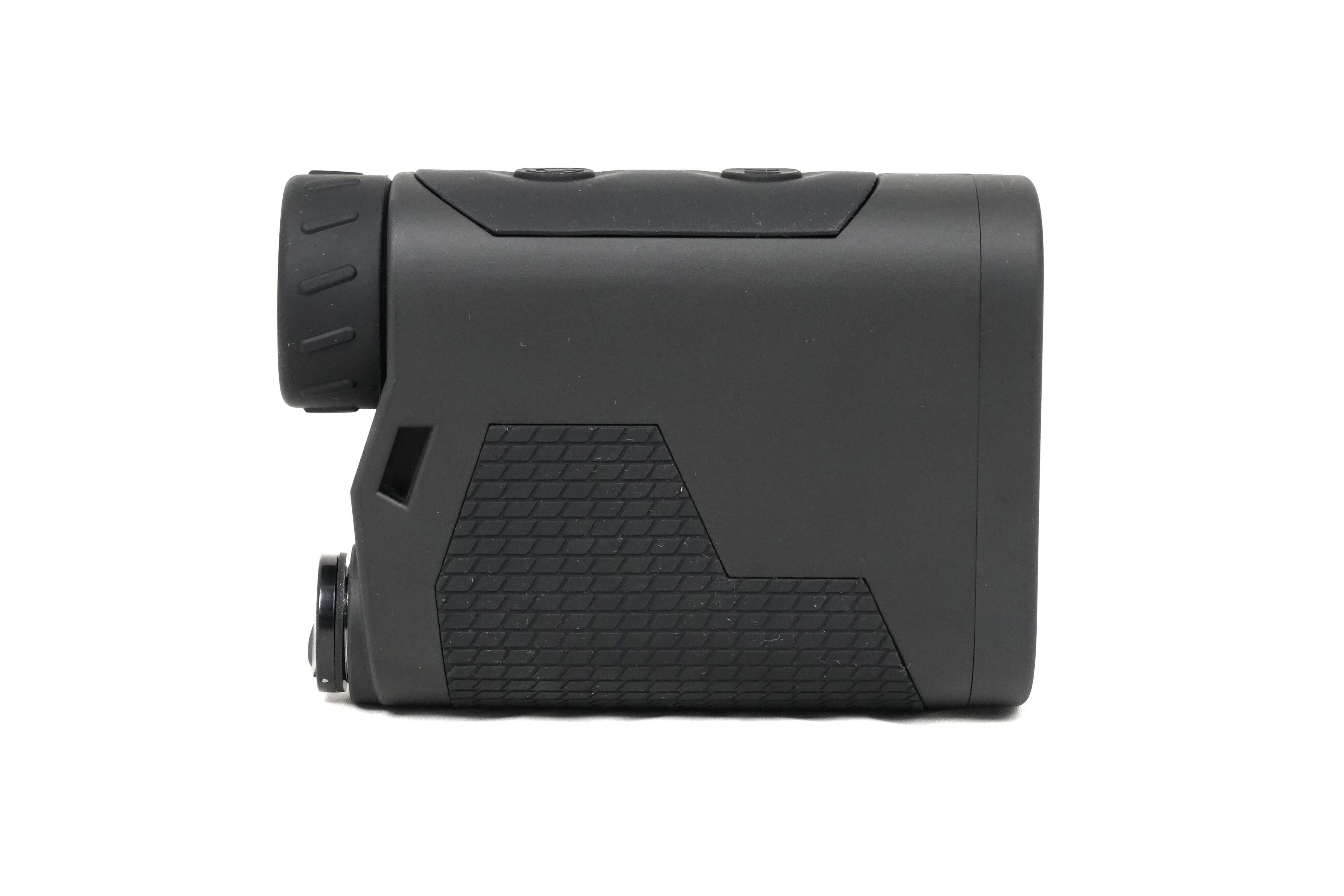 Ударопрочный корпус из полиамида обладает защитой от влаги по стандарту IPX4, что делает его идеальным для охотничьих и туристических походов. Дальномер сохраняет свои функции в условиях повышенной влажности и небольших осадков. Прорезиненная поверхность предотвращает скольжение во влажных руках. Управление устройством происходит при помощи двух кнопок. Диапазон рабочих температур составляет от -10°C до +50°C. Прибор устойчив к падениям и ударам.