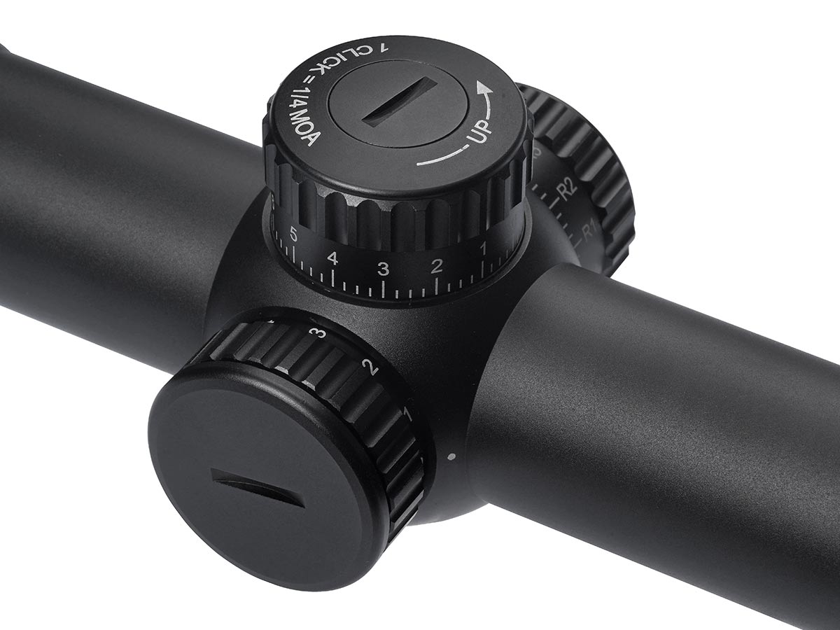 Барабанчики ввода поправок высокие и открытые. Блок подсветки расположен в средней части прицела и работает от батарейки типа CR2032. Подсветка имеет 11 уровней, что позволяет настроить её под любые условия. Подсвечивается полностью всё центральное перекрестие.