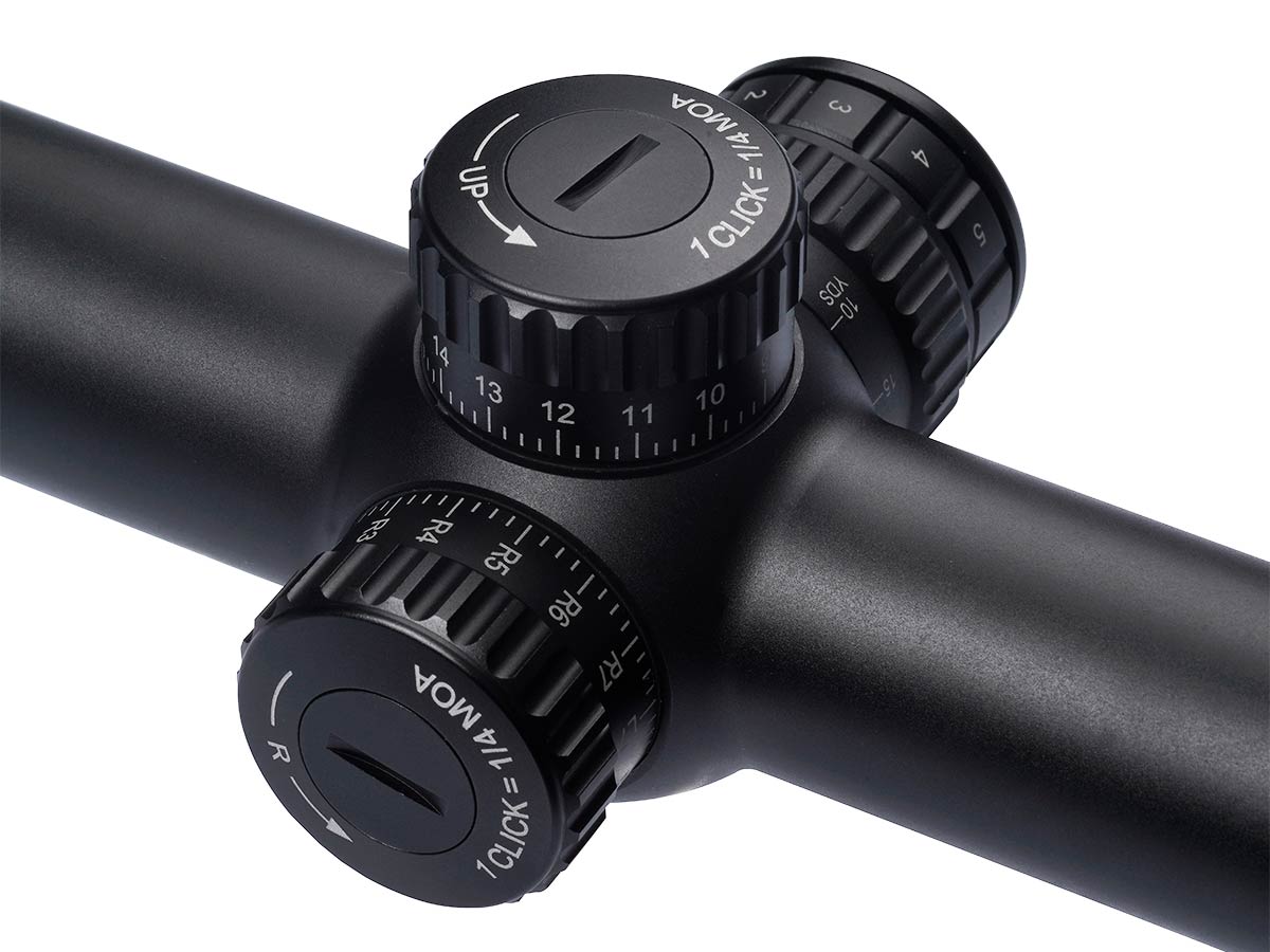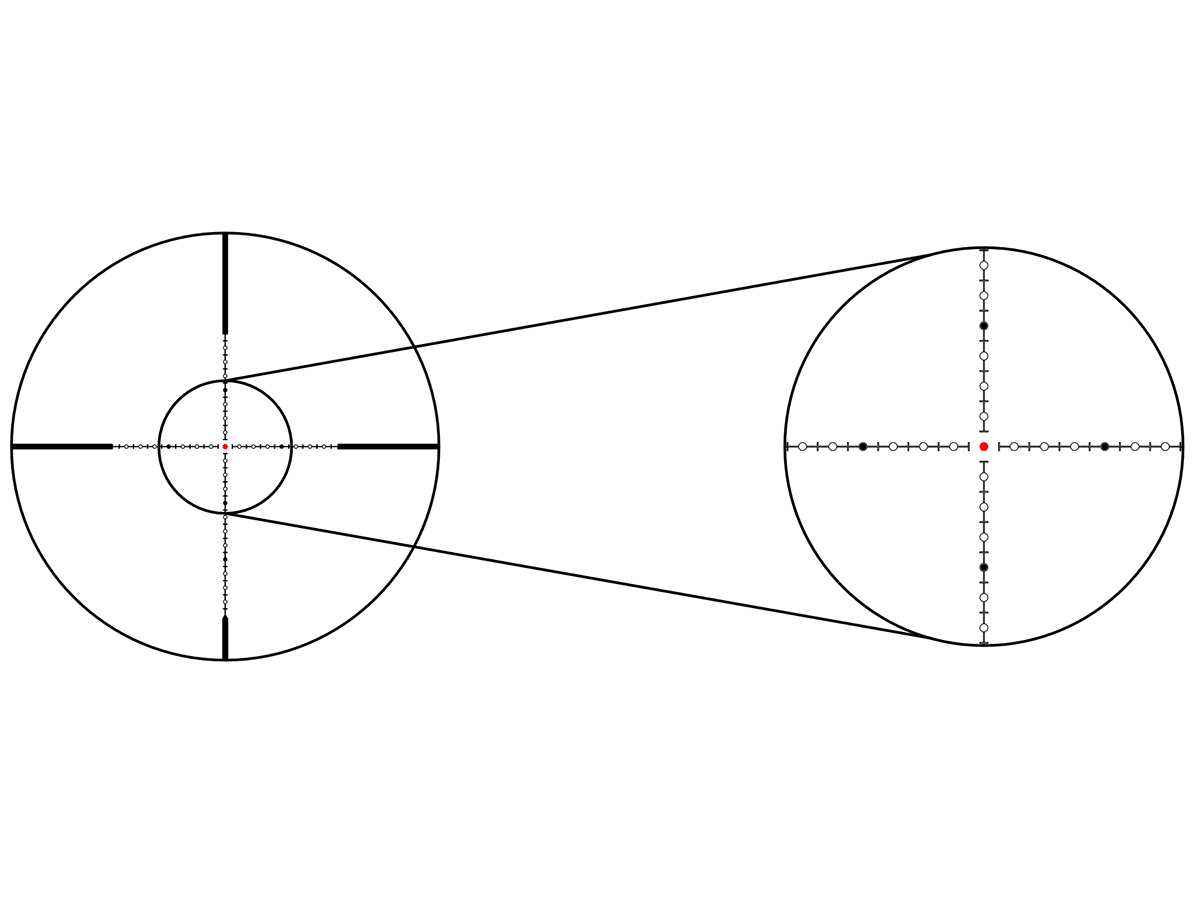 Прицельная сетка 61 (Half MD), расположенная во второй фокальной плоскости (SFP), с увеличением кратности остаётся неизменно тонкой. При этом угловые размеры сетки пропорционально изменяются. Отстройка параллакса осуществляется боковым барабаном (SF) от 9,14м до бесконечности.