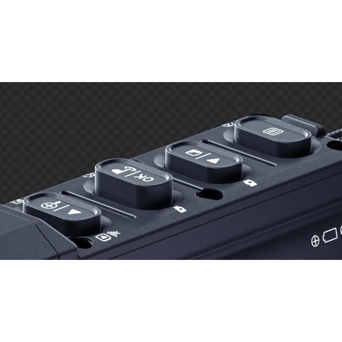 Кнопки на панели управления крупные, одинаковой формы, но разной высоты: специально для быстрой активации дальномера и БК даже в темноте, рукой в перчатке. Доступность универсальная — под левшу и под правшу, под стрельбу с разных положений.